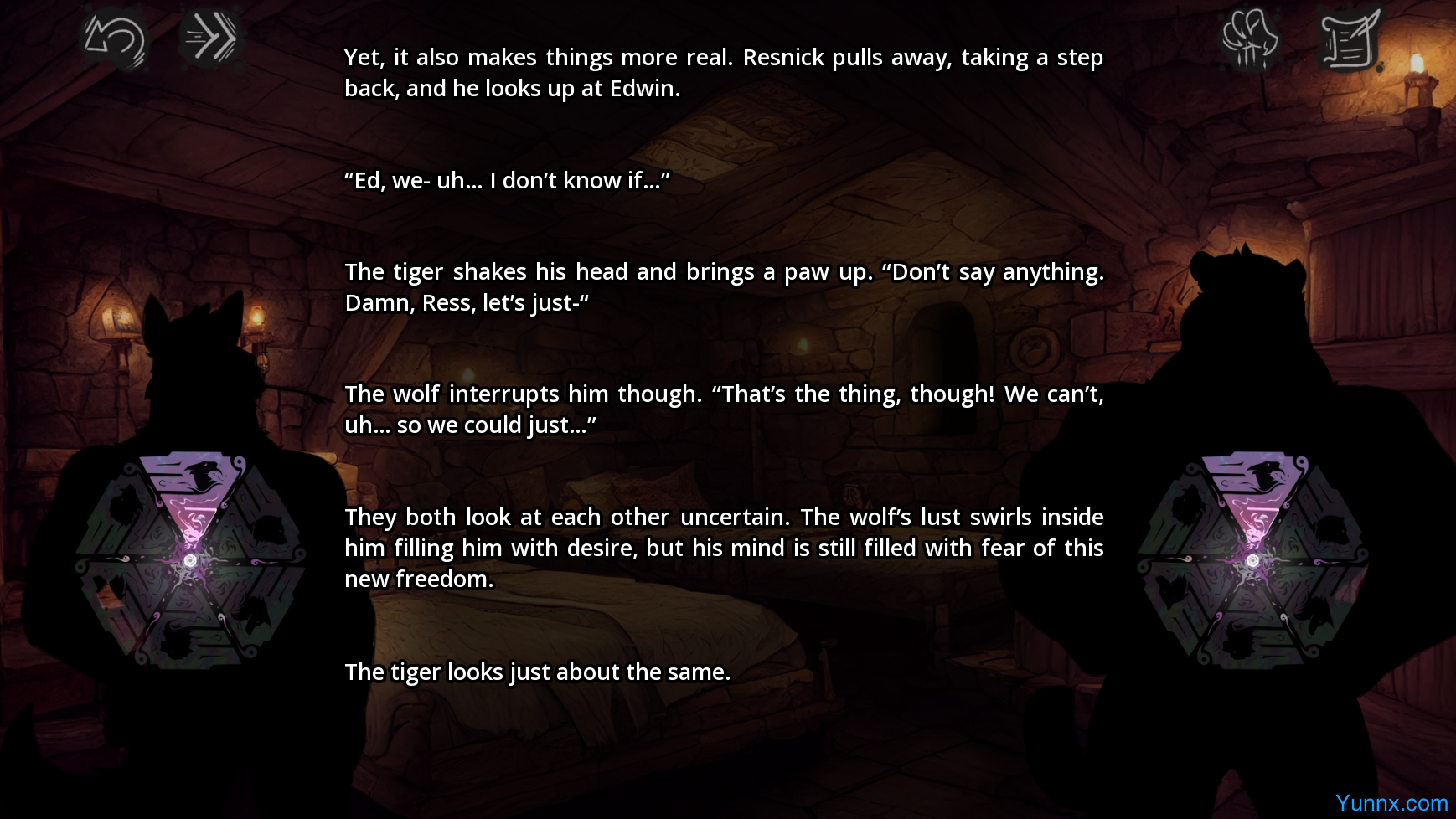 Demons Within is a furry-themed adult visual novel where you play as a weakened demon of Lust possessing a soldier of the Dawnbreak Order. Experience the world through Resnick's eyes as he battles demons and grapples with his inner turmoil. Explore themes of identity, temptation, and redemption in this gay-focused narrative with multiple endings.