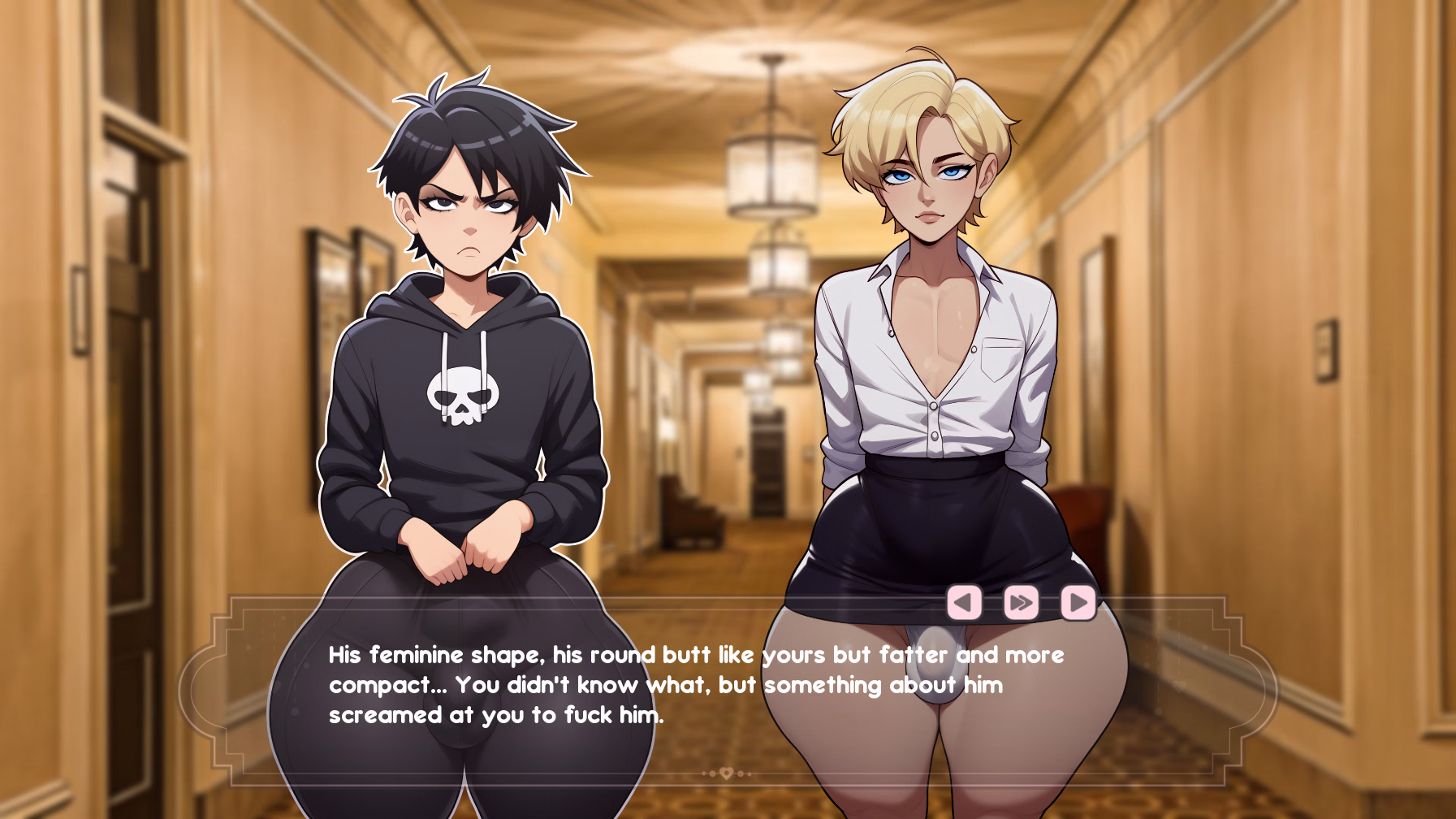 "Femboy Hotel" is a quirky, inclusive adult visual novel that mixes humor and adventure with a unique hotel setting. Play as a character seeking employment at the eccentric Trapfield Hotel. Whether you're a femboy or a powerful amazonian, you’ll find exciting opportunities, strange encounters, and plenty of surprises along the way.