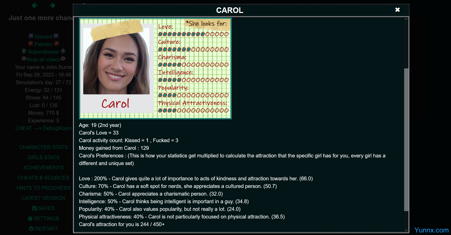 1. Start as a shy, overweight virgin and gradually transform through skill-building, confidence growth, and in-game choices.