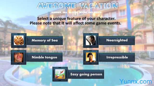 "Awesome Vacation" is an immersive simulation game where you step into the shoes of a university teacher, heading to a sunny resort for a long-awaited break. Will you successfully navigate the distractions of beautiful girls, thrilling adventures, and exciting nighttime escapades, or will your vacation plans go awry?