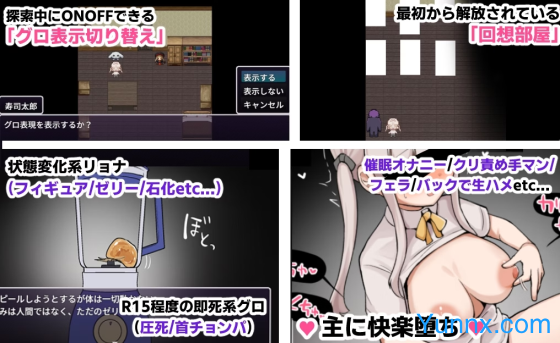 2. Dynamic State-Change Mechanics: Transform characters into surreal forms ("ryona" states) to unlock hidden pathways, requiring strategic risks for progress.