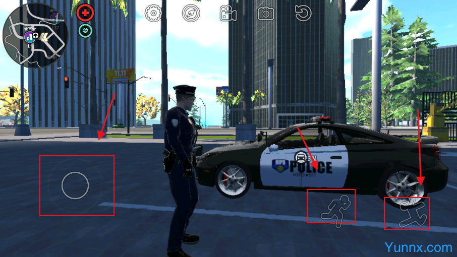 1. The joystick in the lower left corner can control the character's movement, while the ones in the lower right corner correspond to jumping and running respectively.