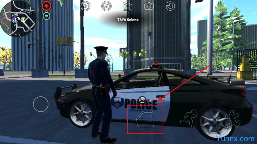 2. Approaching the car door allows you to enter your police car by opening it.