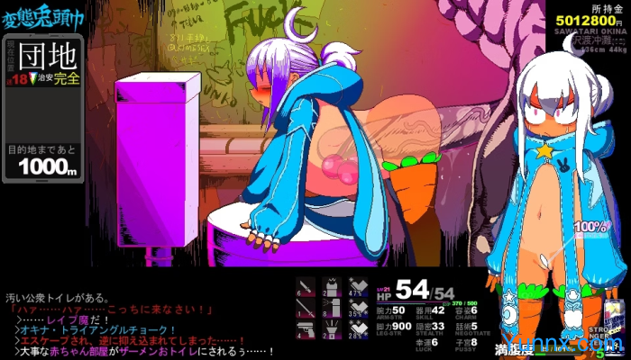 Dive into the gritty world of Hentai Rabbit Hood, a rogue-like adventure where you play as a courier tasked with delivering drugs across hazardous urban landscapes. Press Z to advance meter by meter, facing random events that range from combat and vendors to risky encounters. Manage hunger, health, and arousal to survive this high-stakes journey filled with unpredictable challenges.