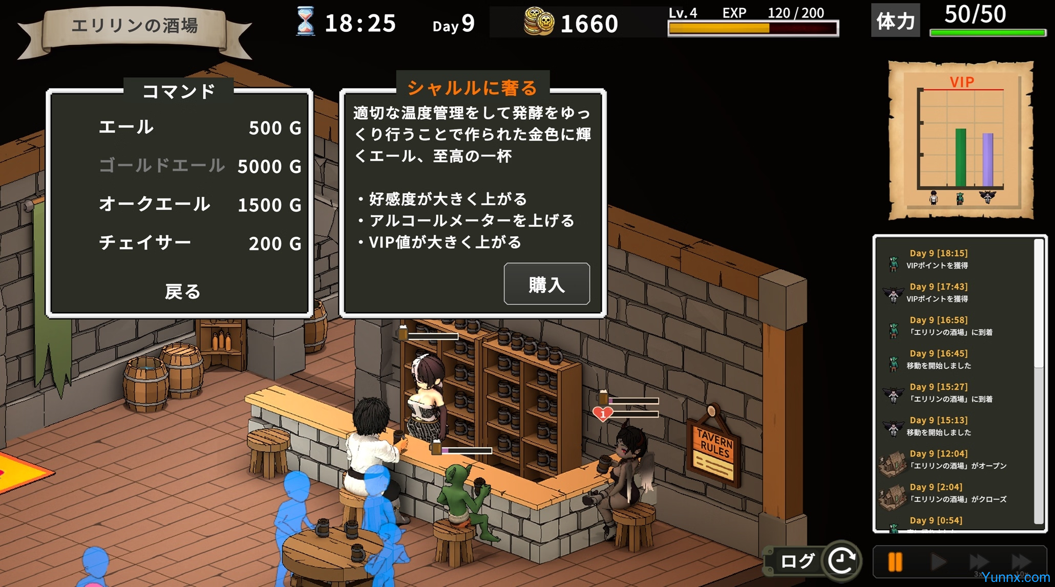 2. VIP Quest: Spend gold at Eririn’s Tavern, strategically buying premium drinks, rare liquors, or even intoxicating beverages to incapacitate rivals or sway customers’ loyalty.