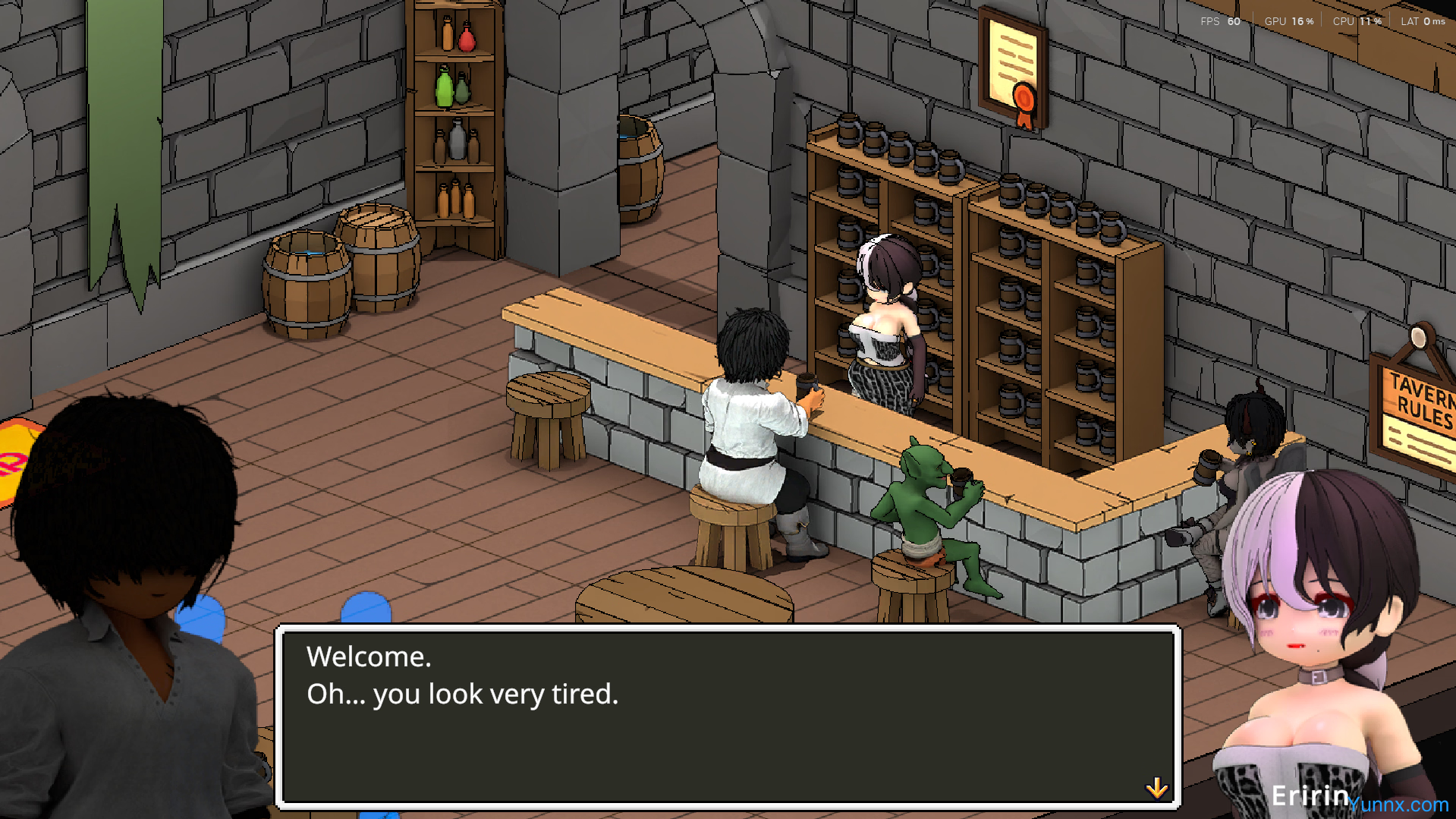 In Eririn’s Tavern, players assume the role of Chad, a former wizard seeking to become a bartender by completing quests, battling foes, and earning gold to climb the ranks of the elite bar’s VIP tier. Compete against rivals, strategically manage resources, and forge alliances—or sabotage others—to claim top status in this blend of strategy, social simulation, and whimsical adventure.