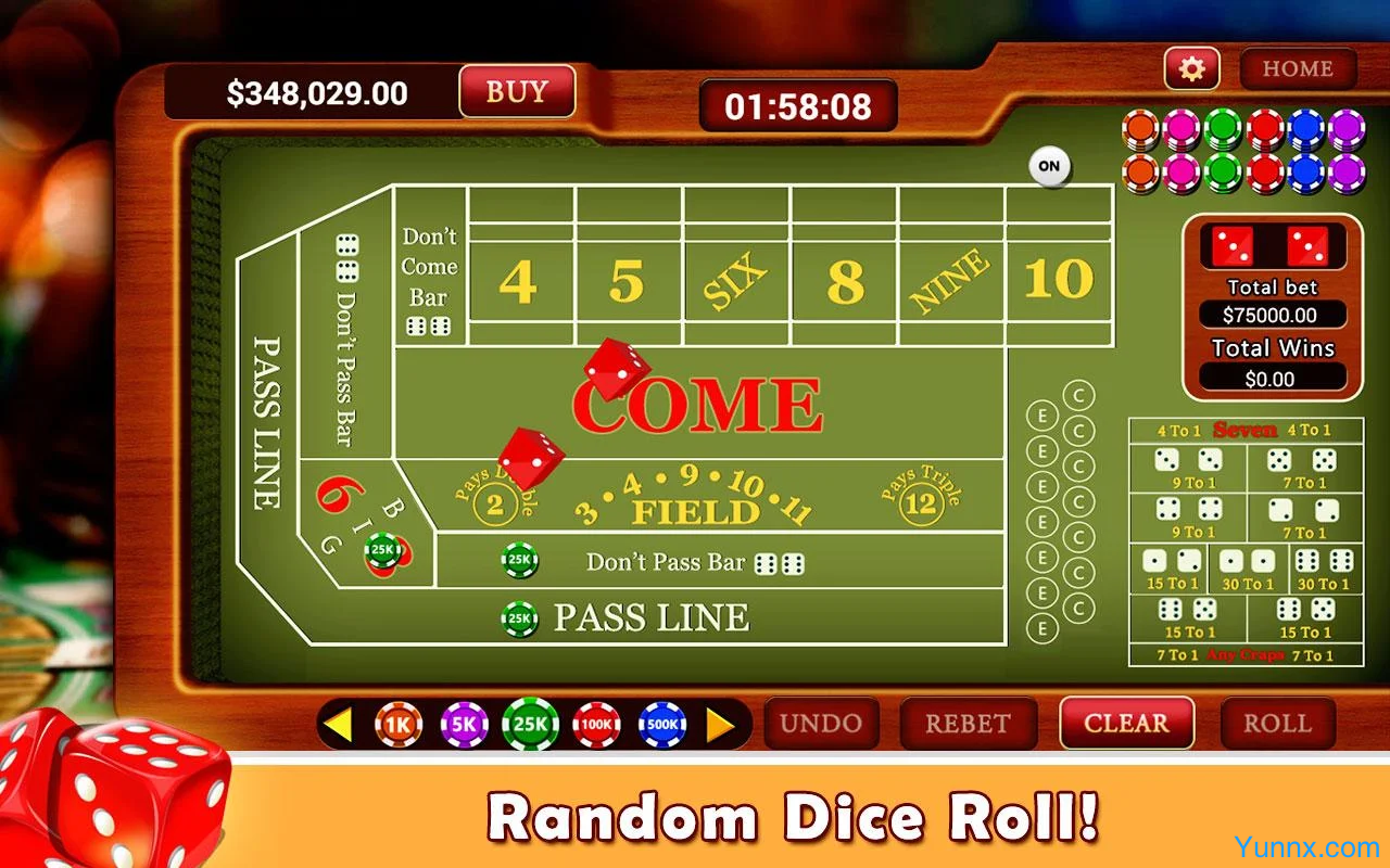 1. Realistic Table Environment: The app replicates a live casino craps table with true-to-life graphics, chip sounds, and background music. Every detail—from the felt layout to the dice animation—mirrors the energy of a physical casino, pulling you into the action.
