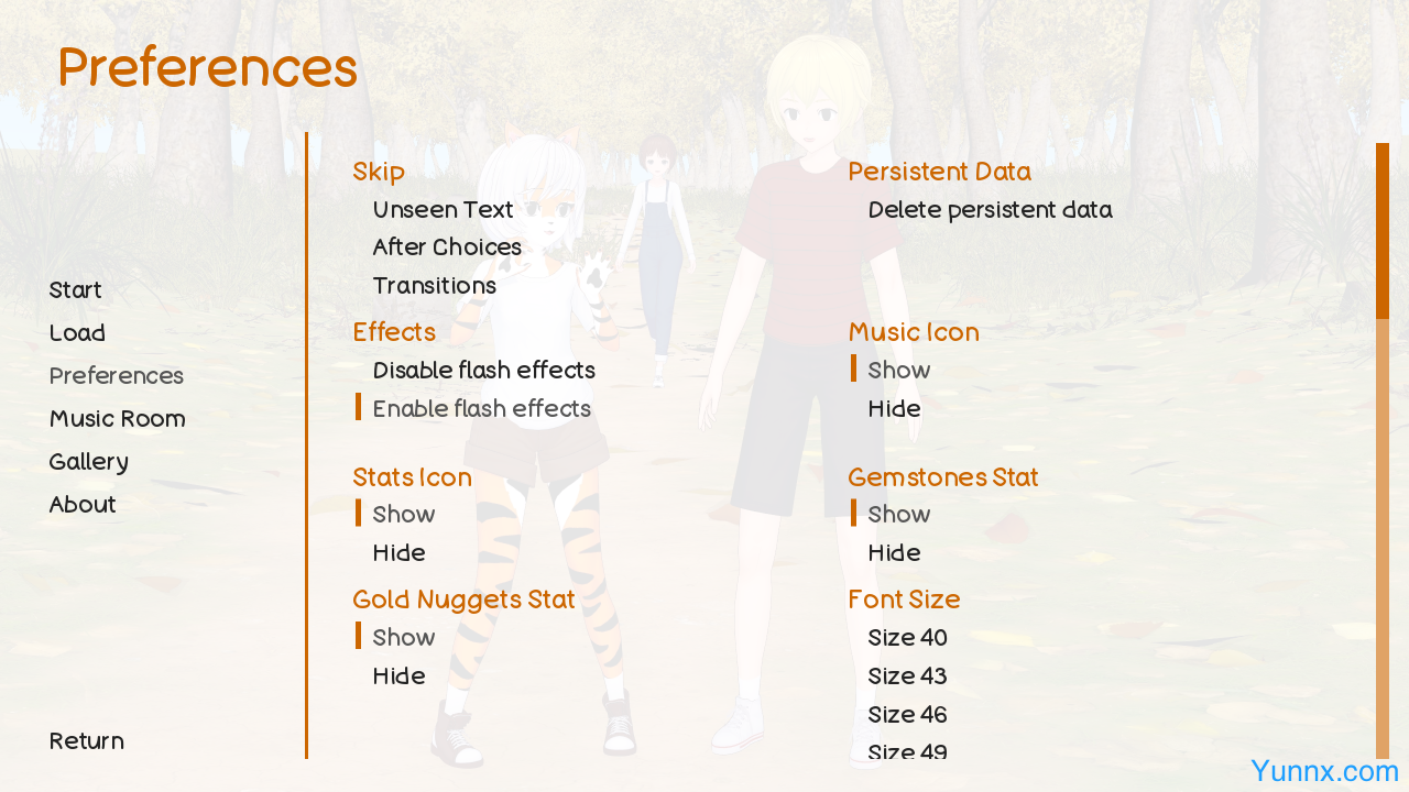 2. A comprehensive gallery system allows players to unlock and revisit images and replays, while built-in cheats simplify progression for casual enjoyment.