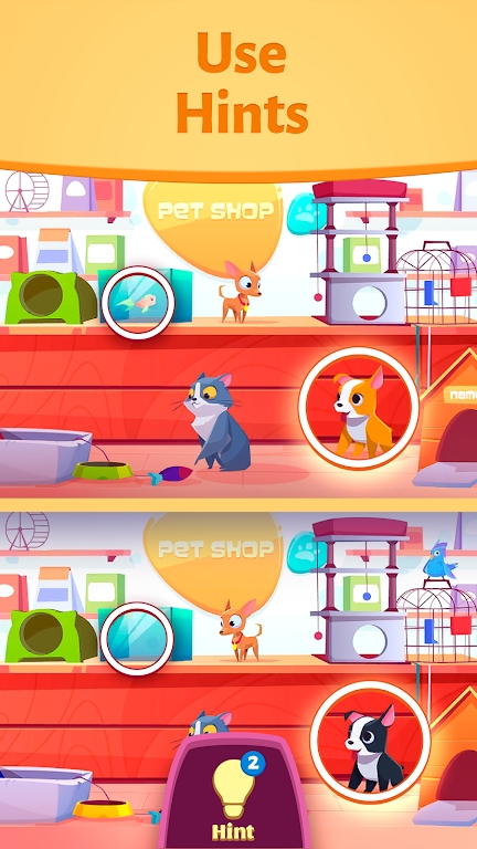 Players can use hints to help them find the hidden differences if they get stuck.