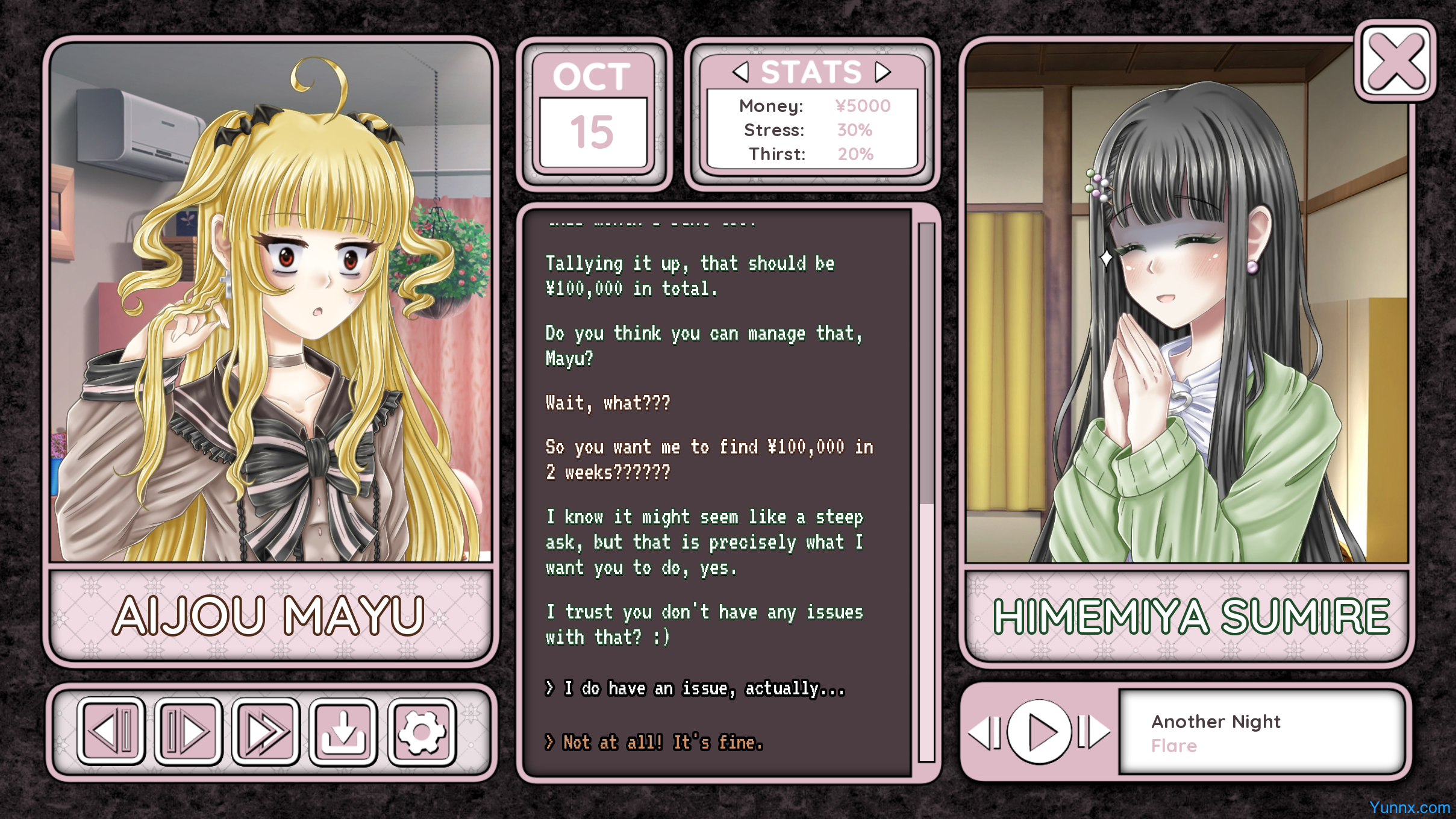 2. Multi-End Story: Outcomes hinge on financial success, stress levels, and relationship choices. Will Mayu thrive, flee, or face her fate?
