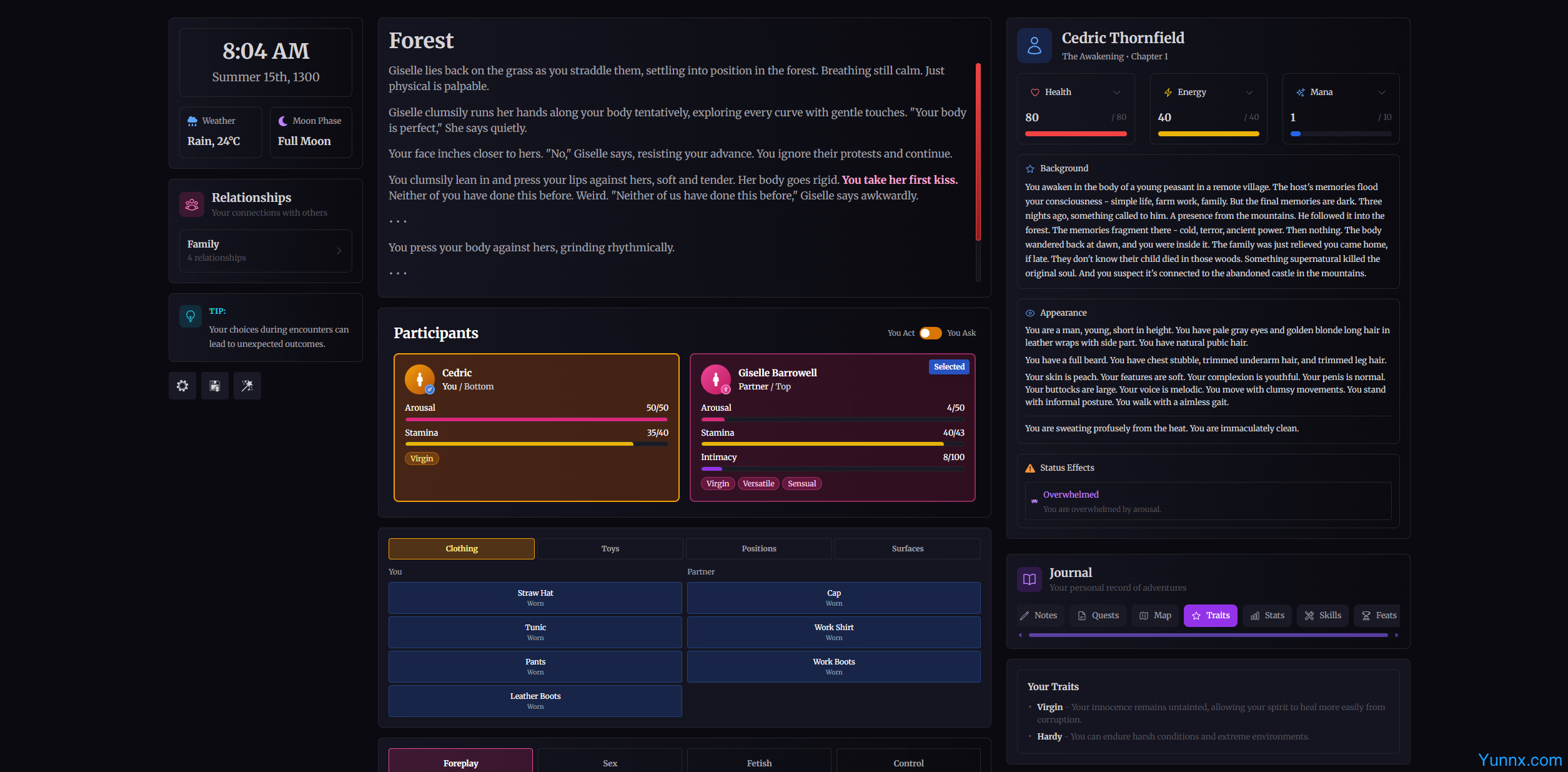 3. Forge dynamic relationships with factions and individuals, from romantic entanglements to political rivalries, using a reputation system that remembers your choices.