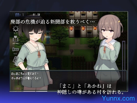 When two high school journalists, Mako and Akane, visit a remote village to save their newspaper club, they stumble upon a bizarre festival that plunges them into a nightmare. Trapped in Saooni Village, they must uncover its secrets while evading grotesque monsters and navigating its eerie rituals. This short horror adventure blends psychological tension with mature themes, featuring Live2D animations, multiple endings, and a unique "corruption" system that influences both the story and visceral scenes. Will the girls escape alive, or become permanent guests of the village’s dark legacy?