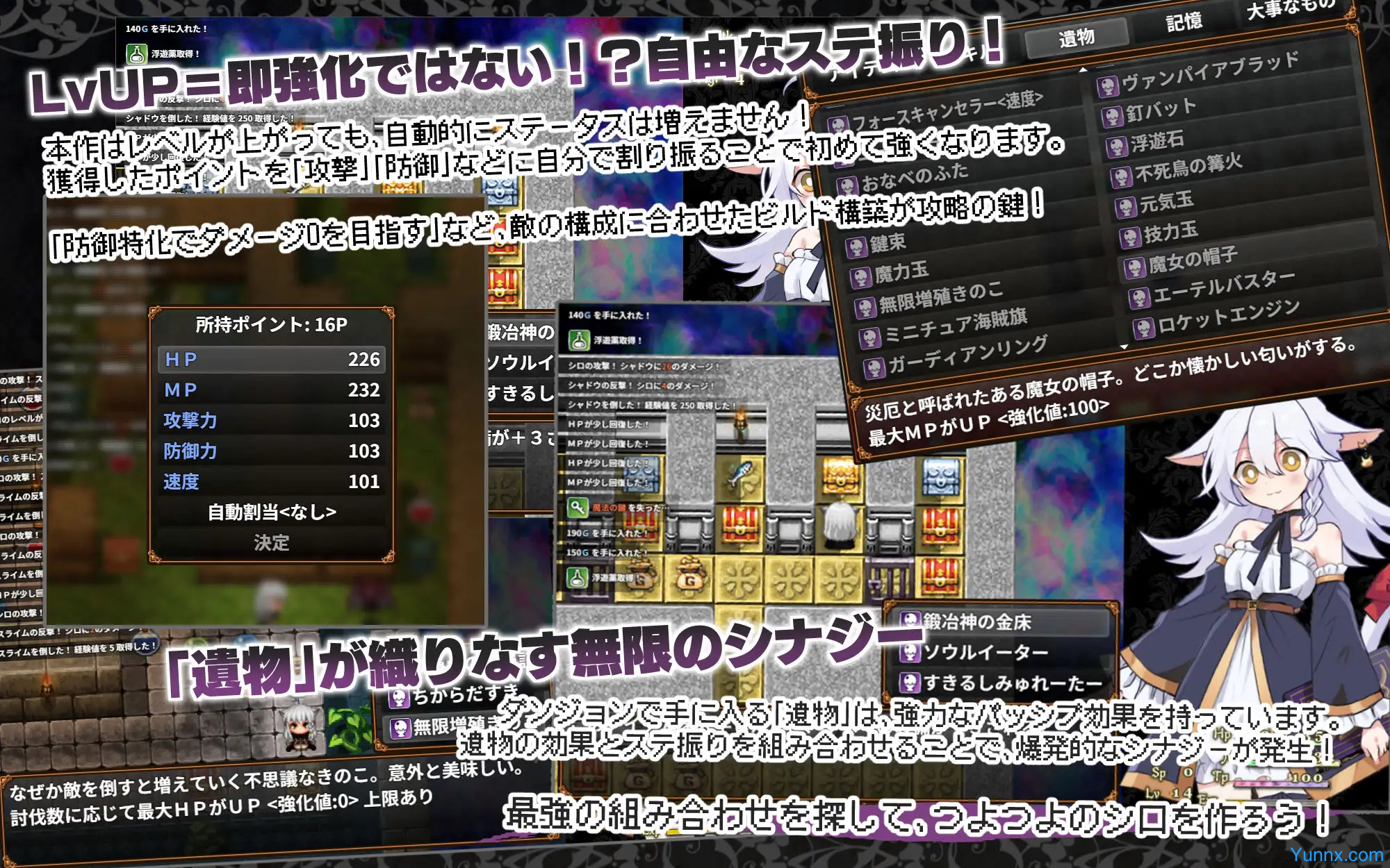 In "Nyacronomicon!", you play as Shiro, a cat-eared apprentice witch who accidentally opens the mysterious Necronomicon. Drawn into a perilous labyrinth filled with monsters and shifting floors, Shiro must confront her desires and master the secrets of the dungeon to escape before losing her memories forever.