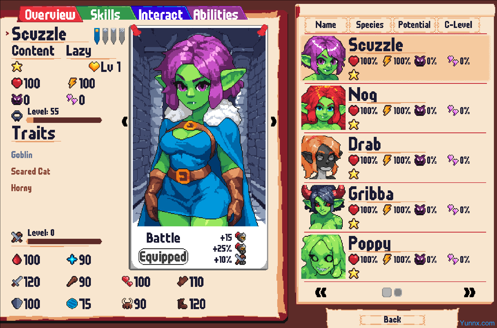1. Train your captured Monster Girls, enhancing their skills to improve tavern operations and dungeon exploration effectiveness.