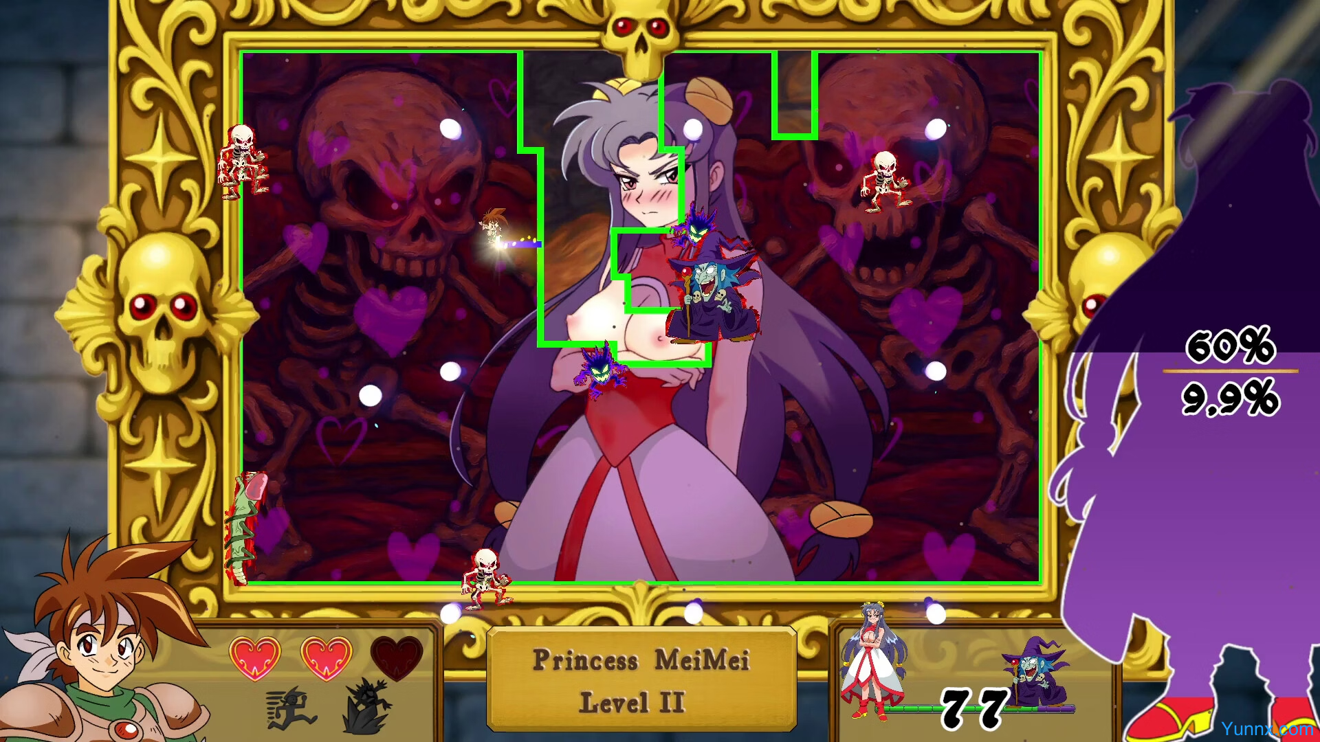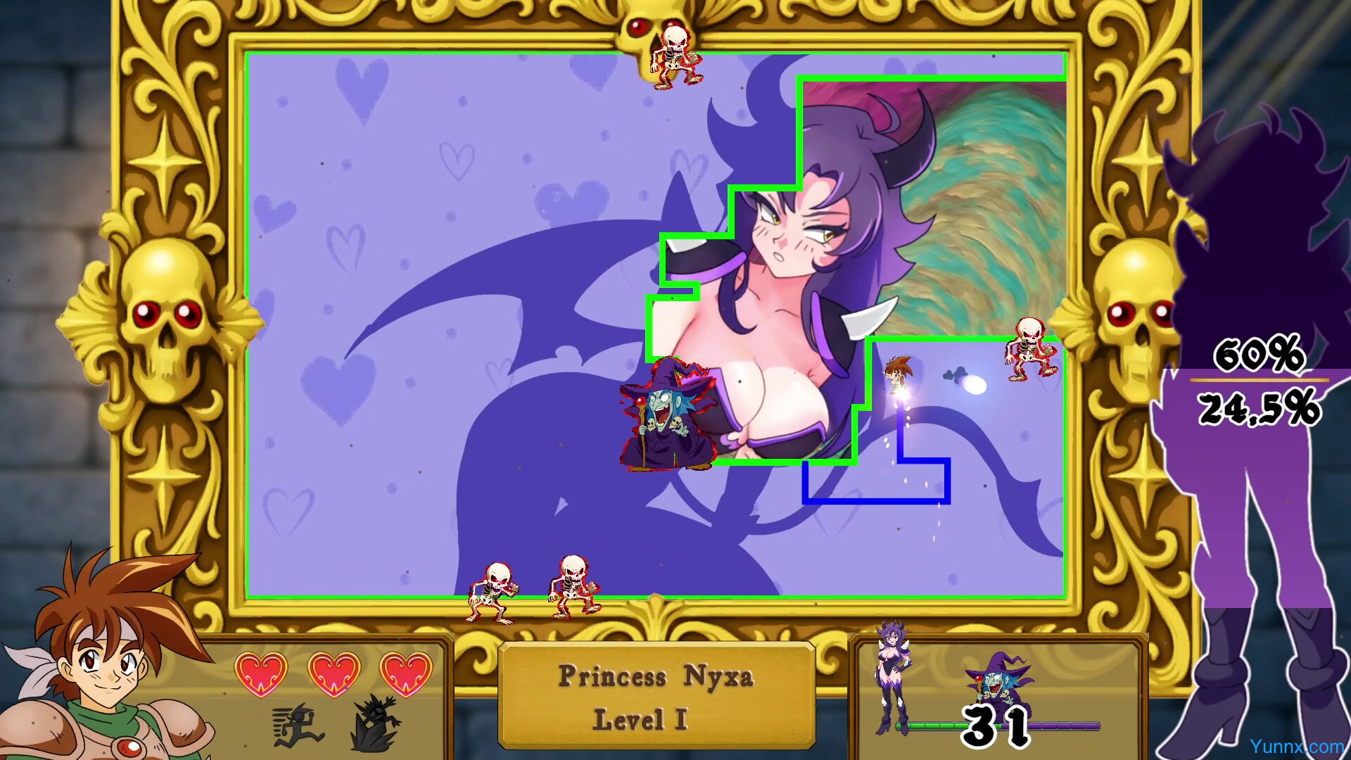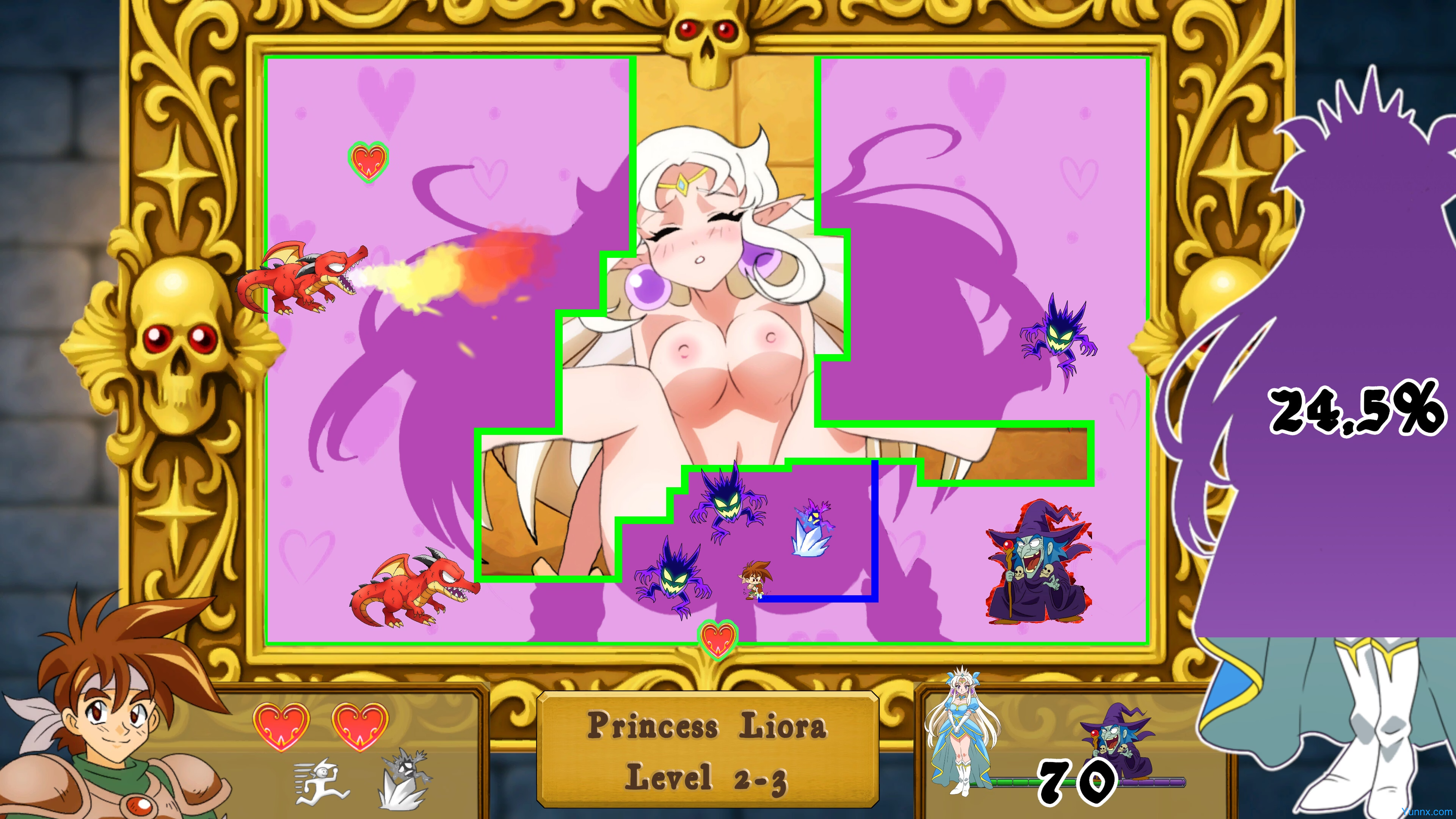 Armed with a legendary sword, you must slash through enchanted paintings to free five trapped maidens from a dark sorcerer’s gallery. This Qix-style adventure blends adult themes with meticulously crafted frame-by-frame animation, set in a classic JRPG-inspired world. Dodge spectral enemies, carve paths with precision, and unravel a tale of seduction and salvation.