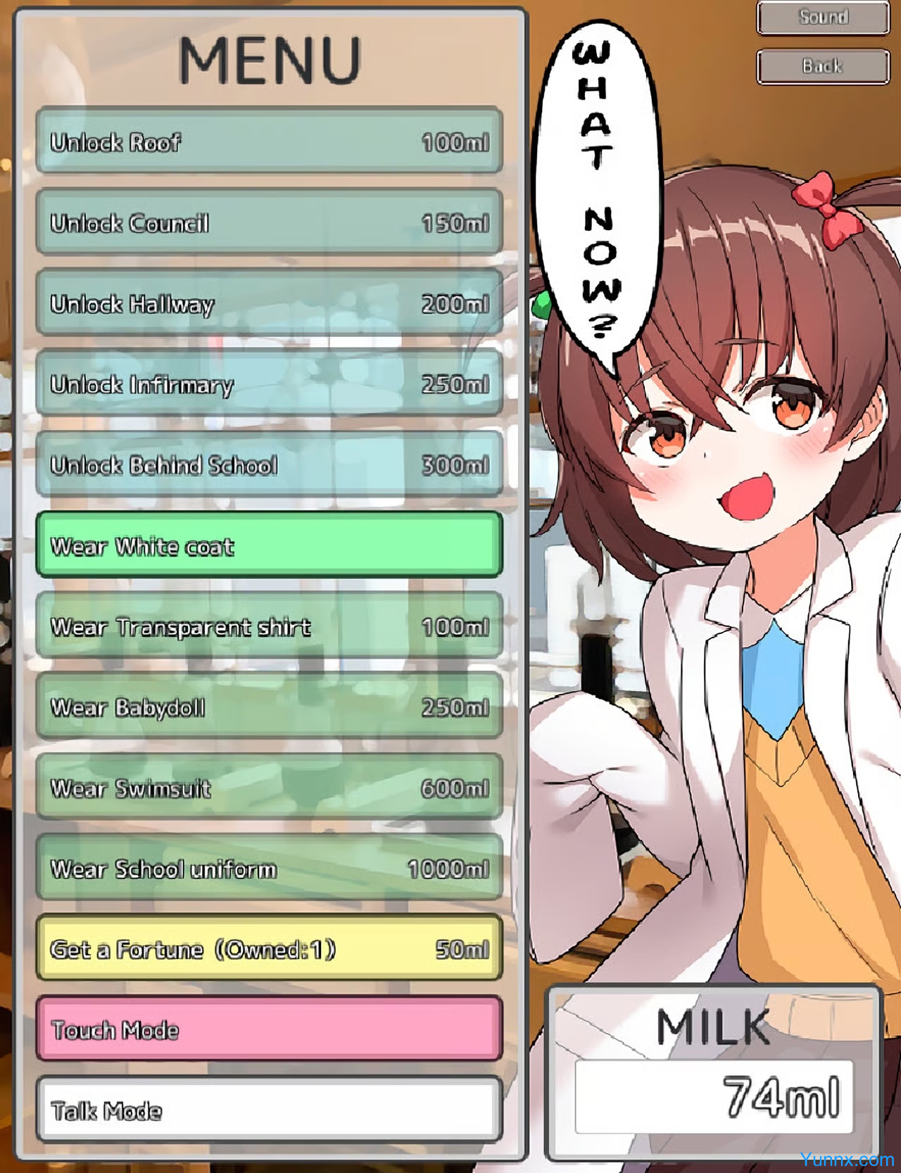 2. Reward Economy: Trade collected milk with Rina in the science lab for bonuses like new outfits, hypnosis upgrades, or pleasure-enhancing gadgets. Outfits alter interactions—e.g., a cowgirl hat boosts her sensitivity to commands