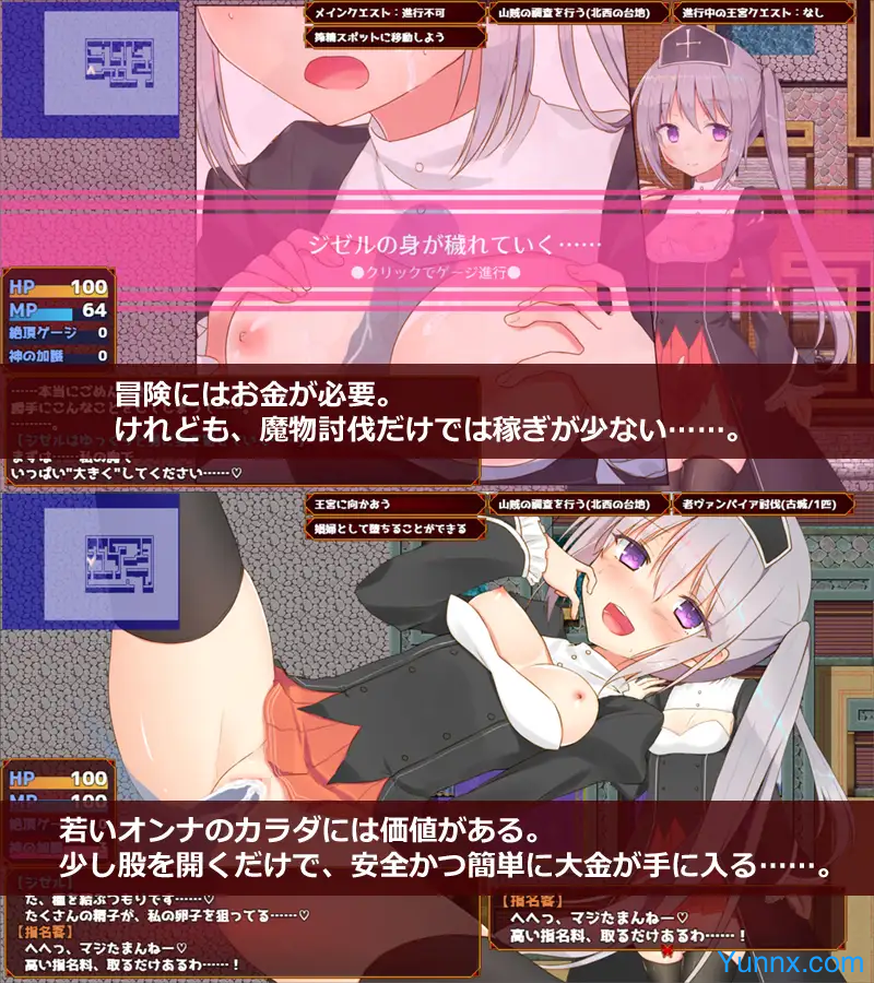 Multiple Routes and Transformations: Throughout the game, Giselle can choose different paths, such as working as a brothel prostitute, frequenting a host club, or even transforming into a thief. These decisions impact the gameplay and open up new sub-quests, providing a rich variety of storylines and endings.